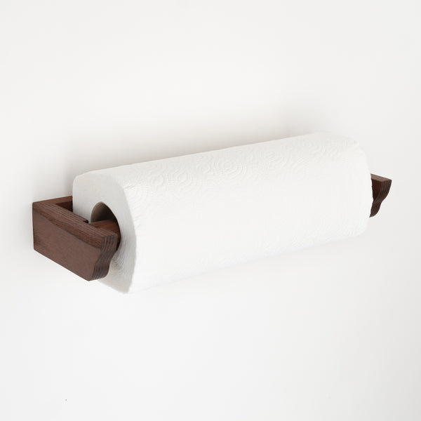 A paper towel holder made from roasted ash wood, made in Auckland by Emile Drescher.